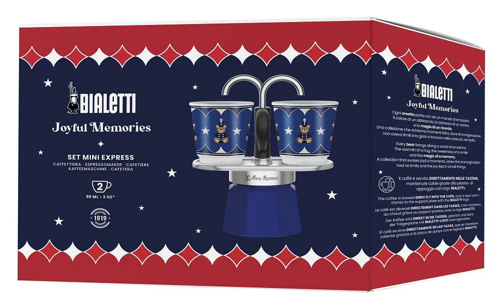 A Bialetti karácsonyi kollekciójának főszereplői a gyermekkori emlékek, melyben a karácsony egy örömteli időszak, tele varázslattal és várakozással. A limitált Karácsonyi Maci kiadásban a Bialetti ikonikus kotyogósa mély, téli kék színben tündököl, szeretettel megtervezett részletekkel, amelyek a gyermekkori emlékeket és a karácsony meghitt hangulatát idézik.
