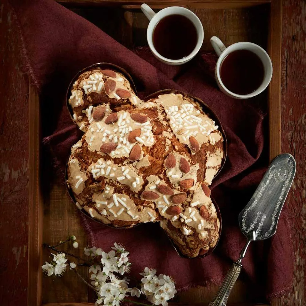 búzaliszt, kandírozott citromhéj 13.2% (citromhéj, glükózszirup, cukor), friss vaj, szabadtartású friss tojássárgája, nádcukor, fehércsokoládécseppek 5.9% (cukor, kakaóvaj, tejpor, emulgeálószer: szójalecitin, természetes vaníliakivonat), víz, természetes kovász (búzaliszt, víz), olasz méz, friss tej, darált kandírozott narancshéj 2.2% (narancshéj, glükózszirup, cukor), só, természetes aroma: vanília